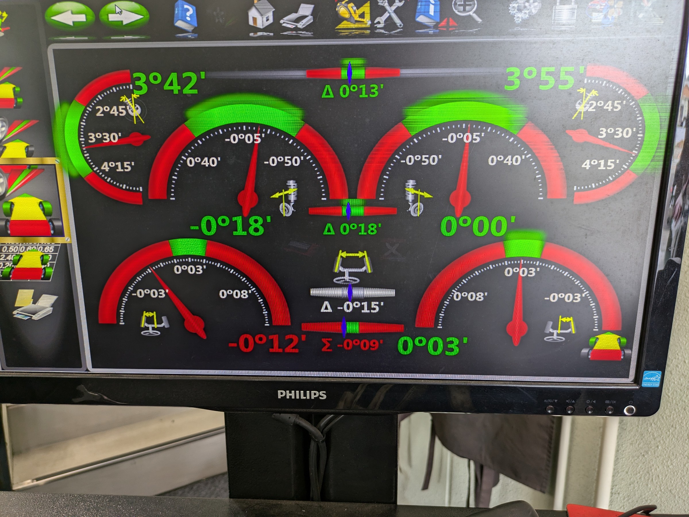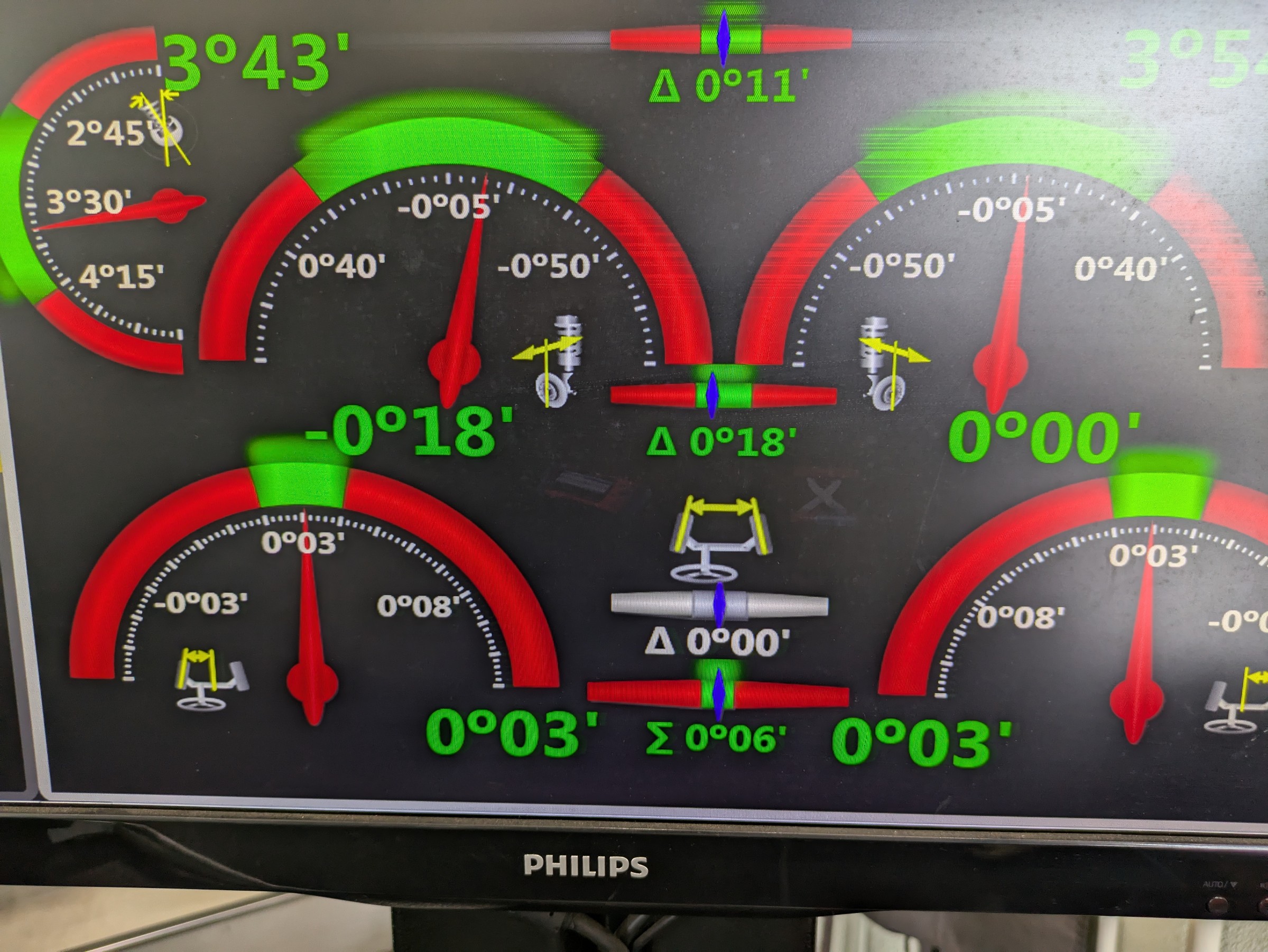 左側フロントのトゥ角が外側に大きくズレていました!