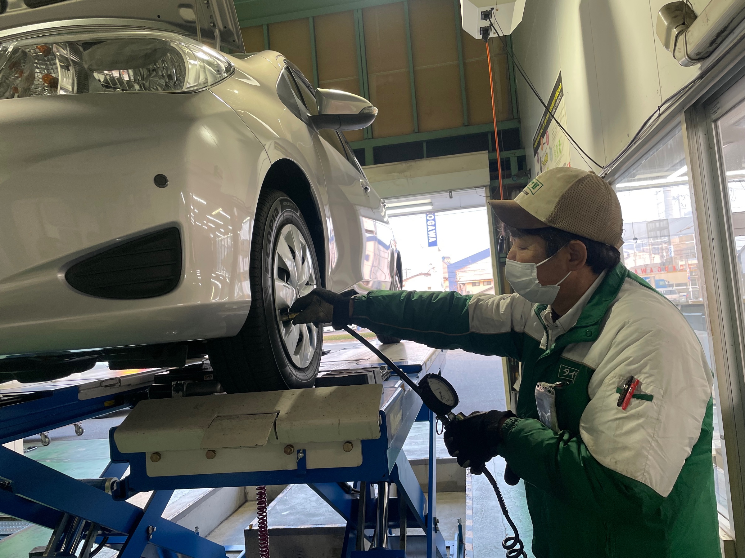 タイヤの空気圧チェックや、