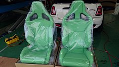 今回の取り付け事例のご紹介は レカロシートです! しかも人気のスポーツスターから限定発売されている、オールグリーンレザーモデルです! お取り付けさせて頂く車はBMW ミニです。 もともとのシートもレザーシートで、このような感じでした。 そしてノーマルシートを外して~ 次に、サイドエアバ...