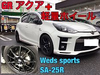 タイヤ館姫路南HPをご覧いただきありがとうございます。 トヨタのスポーツブランド「GR」 様々な車種が「GR」がついたバージョンで販売されてますね。 今日はそのうちの一台『GR AQUA』+軽量ホイール!! 装着するのは人気ブランド『Weds(ウェッズ)』様の『SA25R』 スポーツブランドとしてシンプ...