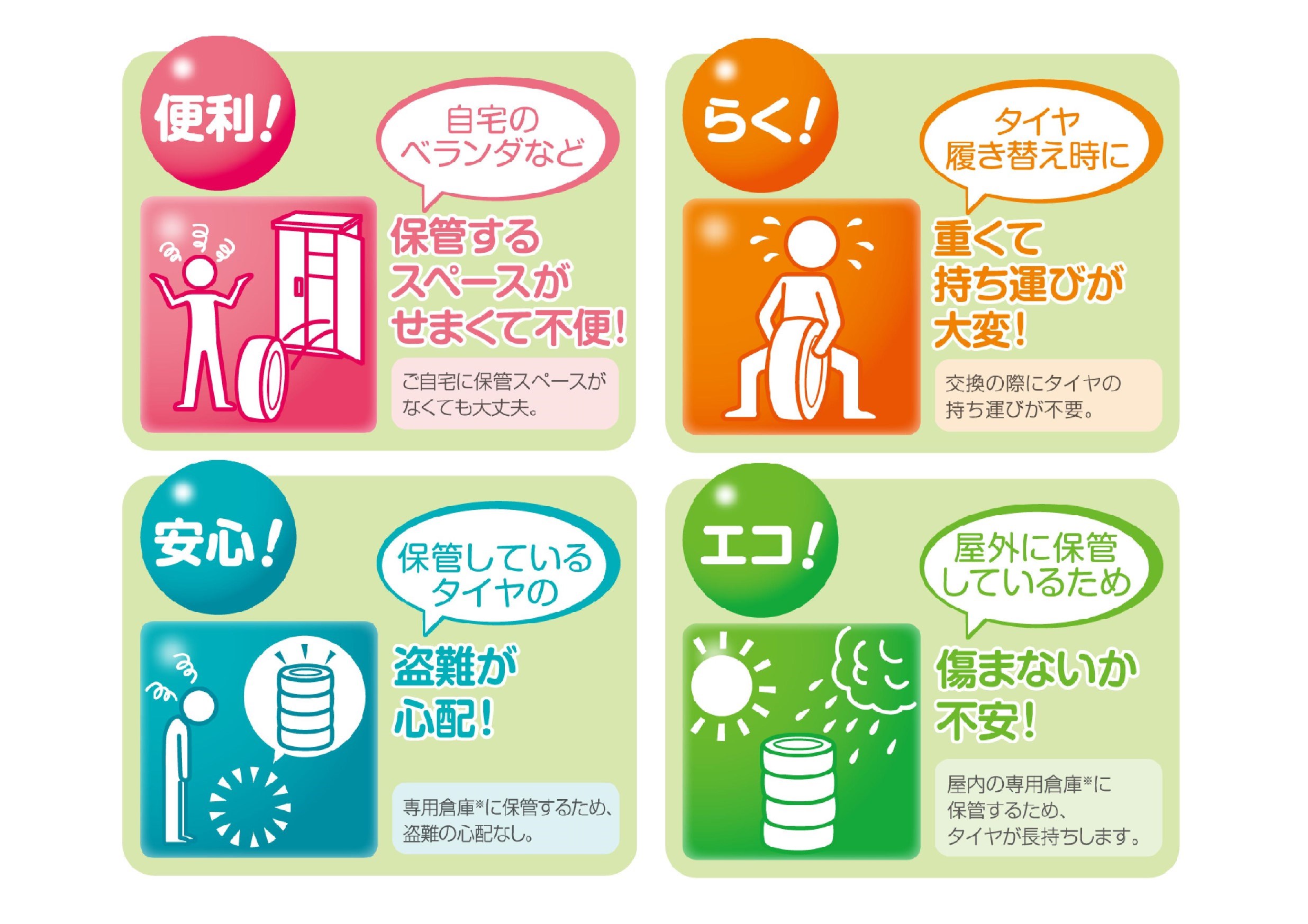 こんなことで“お困り”ではありませんか? ①マンションなどにお住まいで『保管場所がない』 一軒家の方でも『置き場所が狭い』 ②『持ち運びが大変』…タイヤ・ホイールセットって重たいですもんネ ③お家の庭に置いていたりして『盗難が心配』 ④直射日光や雨風でタイヤが『傷まないか不安』 専用倉庫で...
