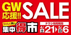 4月21日(土)より ゴールデンウィークお出かけ応援セール開催します!! 今回もお買い得品盛りだくさんで、皆様のお越しをお待ちしております!! タイヤはもちろん、オイル、バッテリー、エアコンフィルター、ワイパーなどのメンテナンス品、 ドライブレコーダーなどのドライブ安心グッズまでご用...