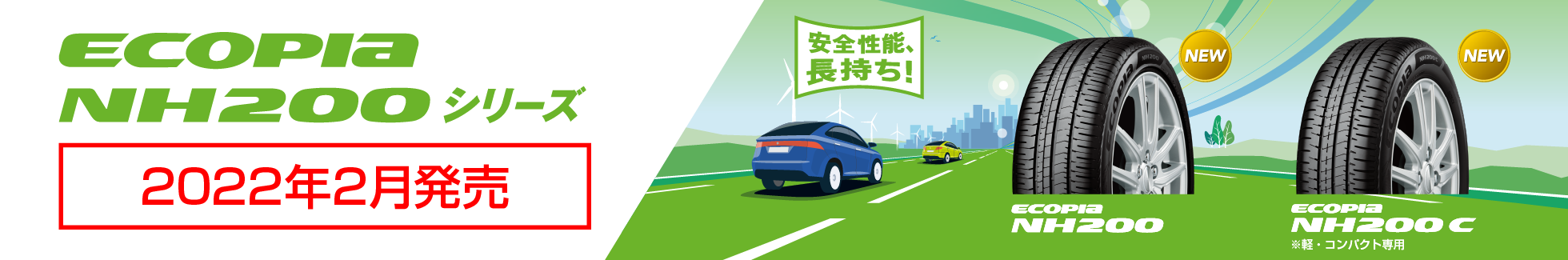 2022年2月より、新ECOPIA「エコピアNH200シリーズ」が発売になりました!! 「低燃費性能」はもちろん、安心・安全のためのタイヤの基本的性能要素の「ウェット・ライフ・ドライ性能」に「直進安定・静粛性・乗り心地」の『7つの性能』を総合的なバランスで保っているタイヤです。 『NH2...