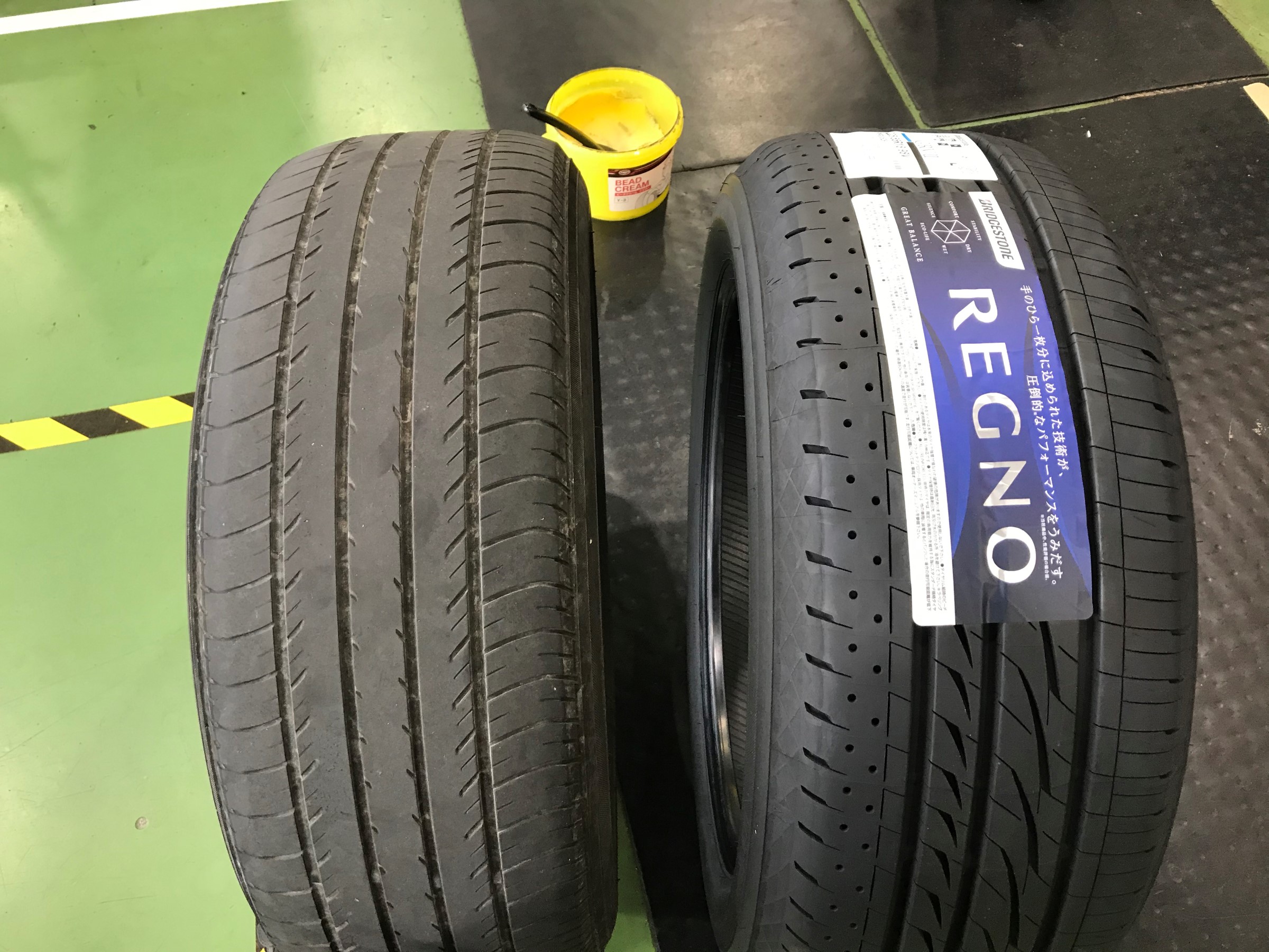 新品タイヤと比べれば、溝の違いが分かりますね。