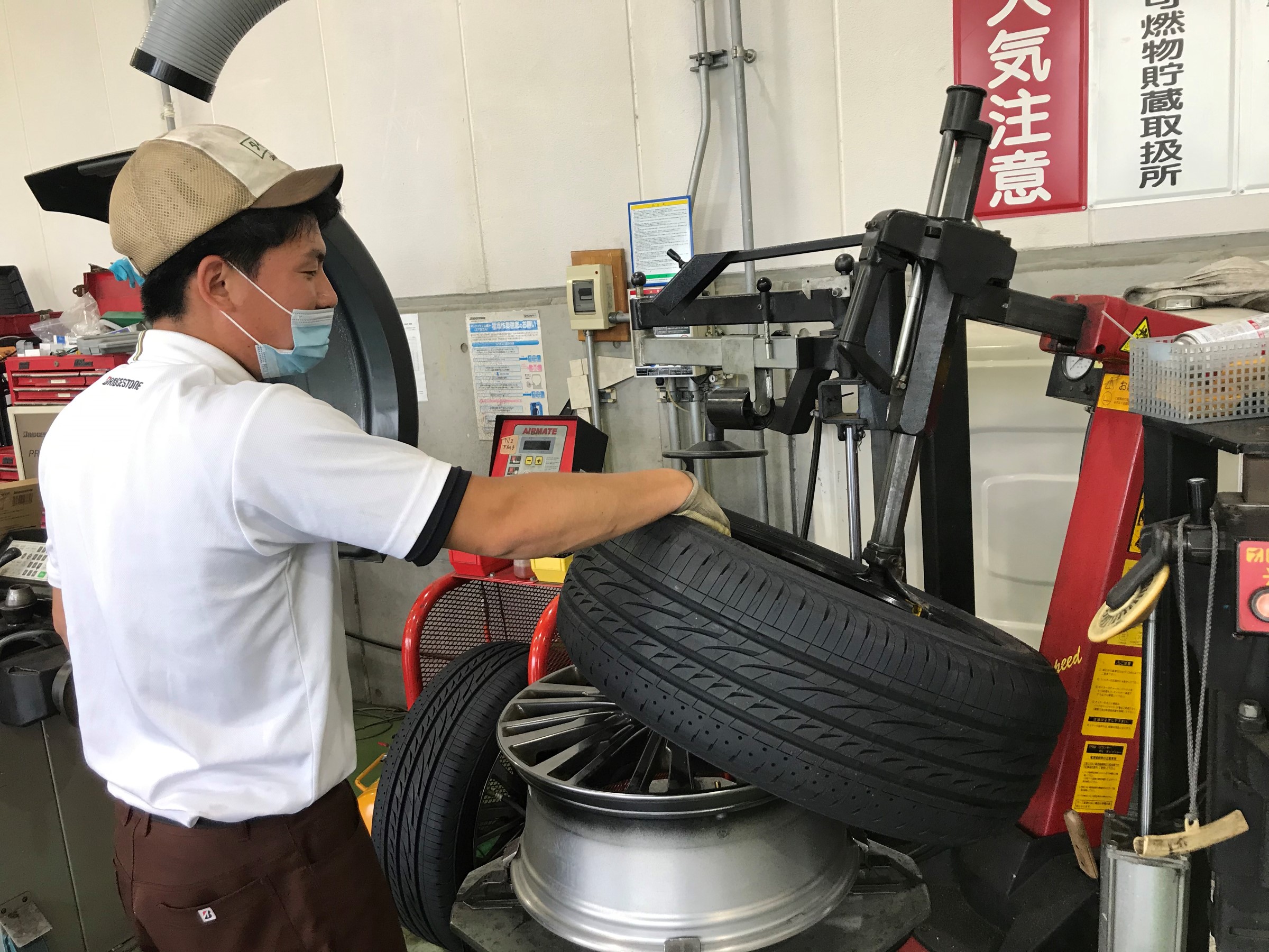 タイヤ交換は作業担当(橋本)が