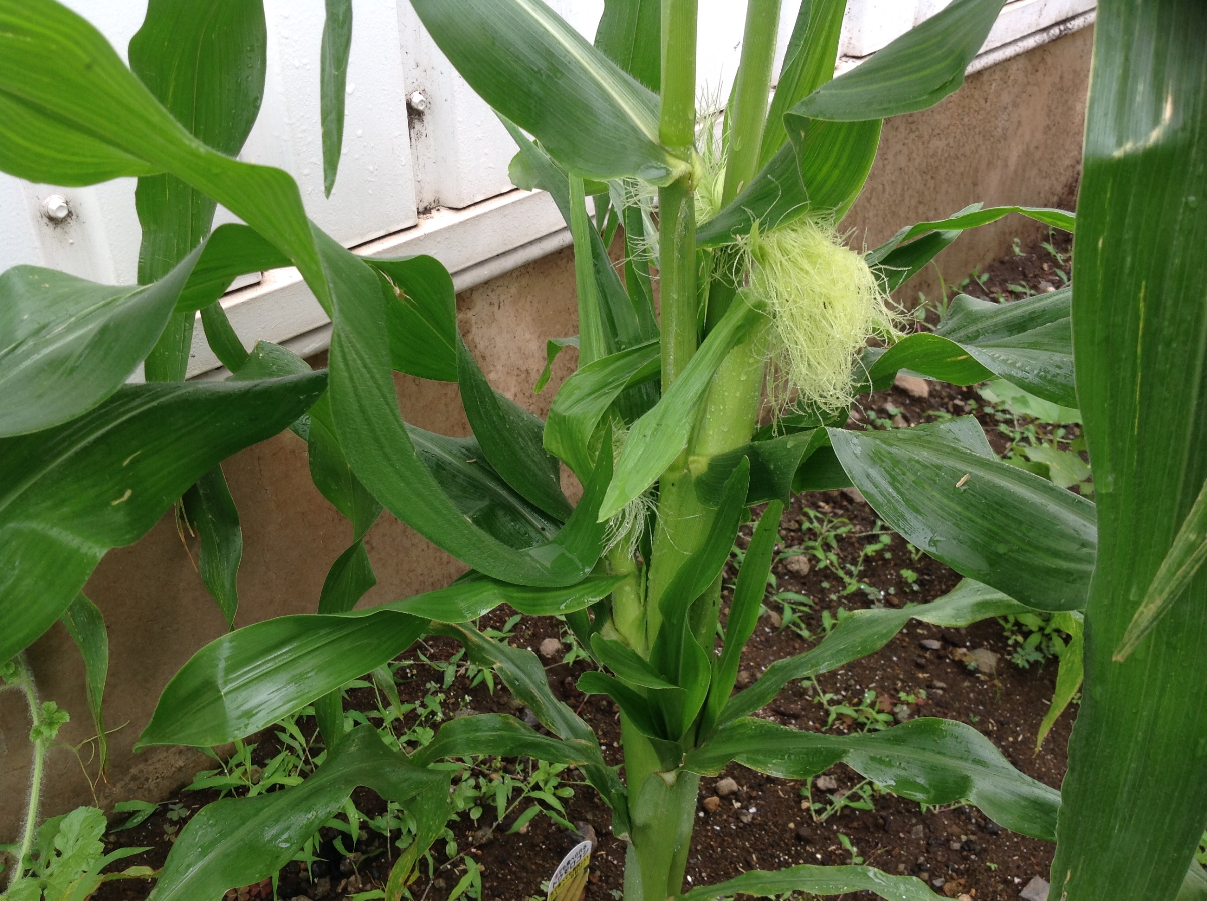 大玉トマトとトウモロコシまだまだかな。