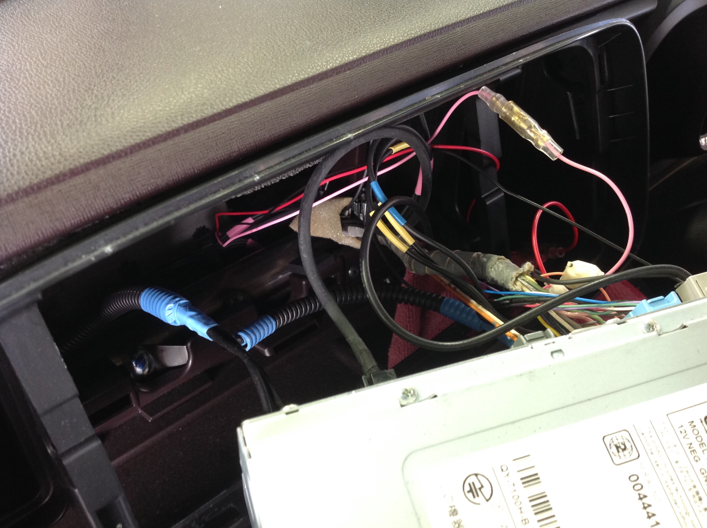 電源や信号等はナビの裏側から取り出し、ハンドルの下あたりに