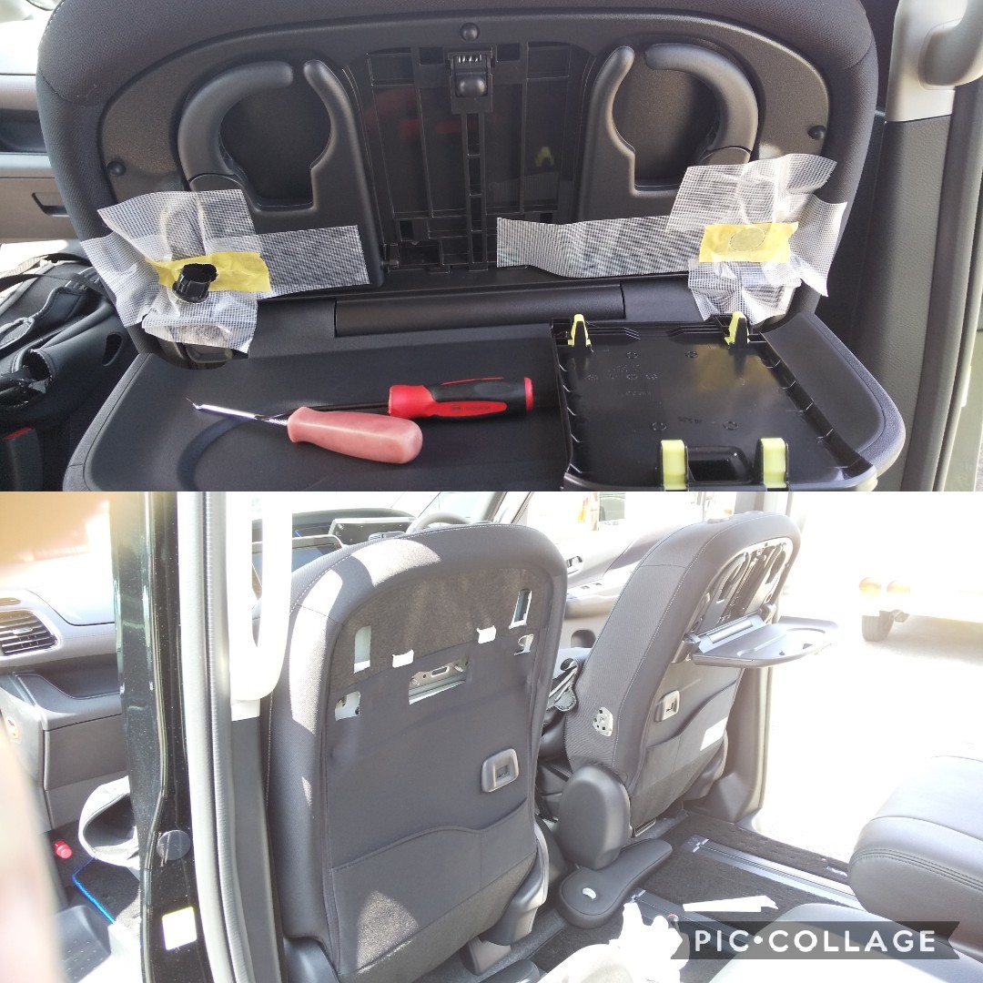 この車は1列目の背面テーブルが厄介ちゃんなので、これでもかってくらい養生してネジを隠してる蓋を外してもいでいきます。。。