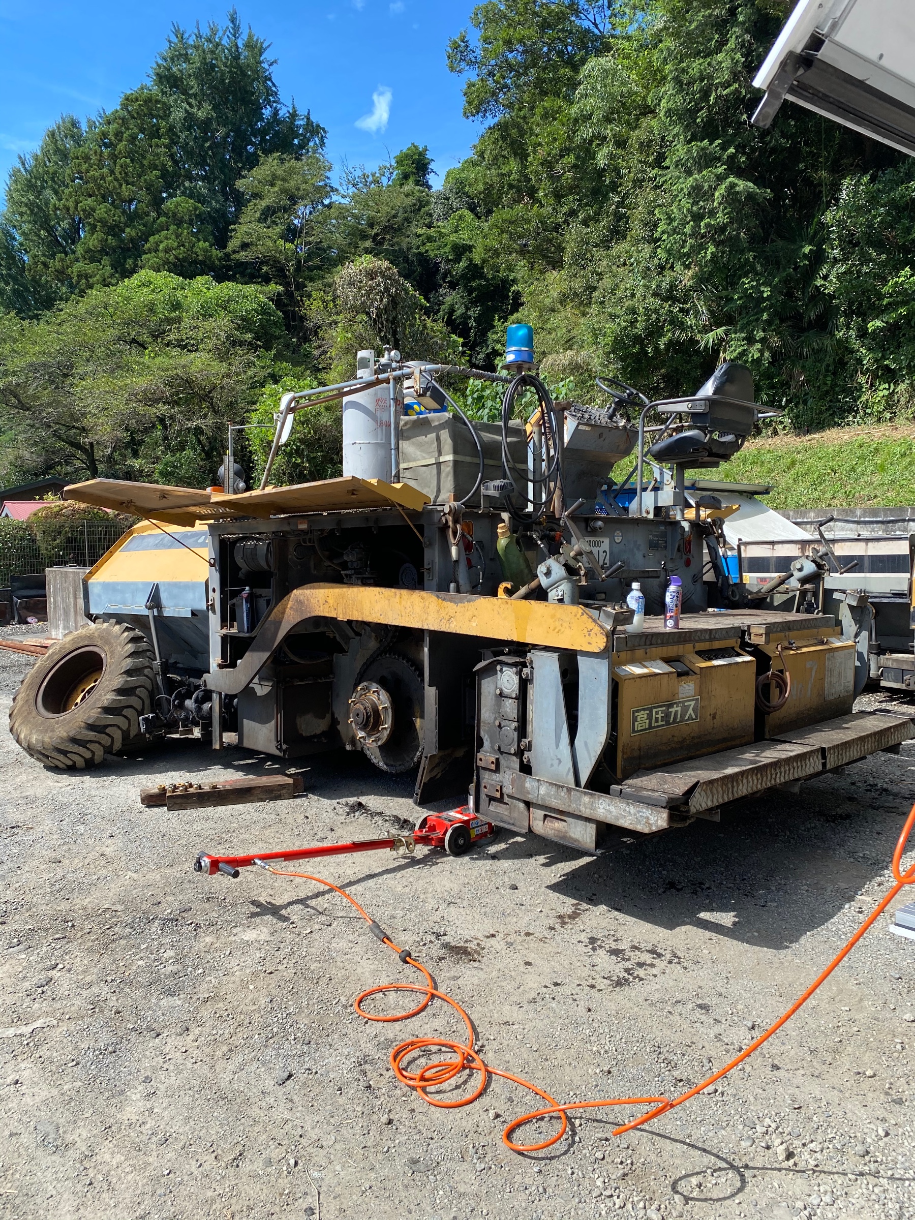 猛暑のなか! ポスト 2020年9月2日 先日、猛暑のなか長年のお付き合いいただいてるお客様からの依頼で脱着作業がありました。 この車両、アスファルトフィニッシャーと言うそうです。道路にアスファルトを引く重機との事です。 とにかく重くてデカイ。簡単な作業なのにとても大変でした。 担当:北原