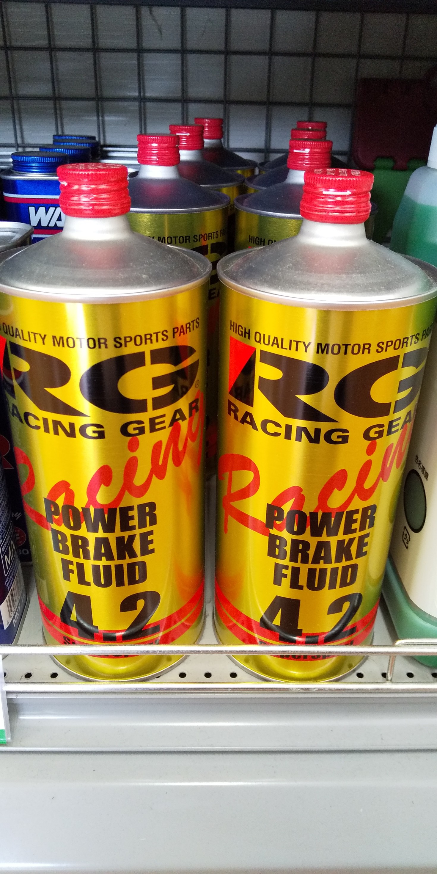 レーシングギアのブレーキフルード、価格も安めで耐久性もあるので街乗り~サーキットまで幅広く使えてなかなかいいですよ☆