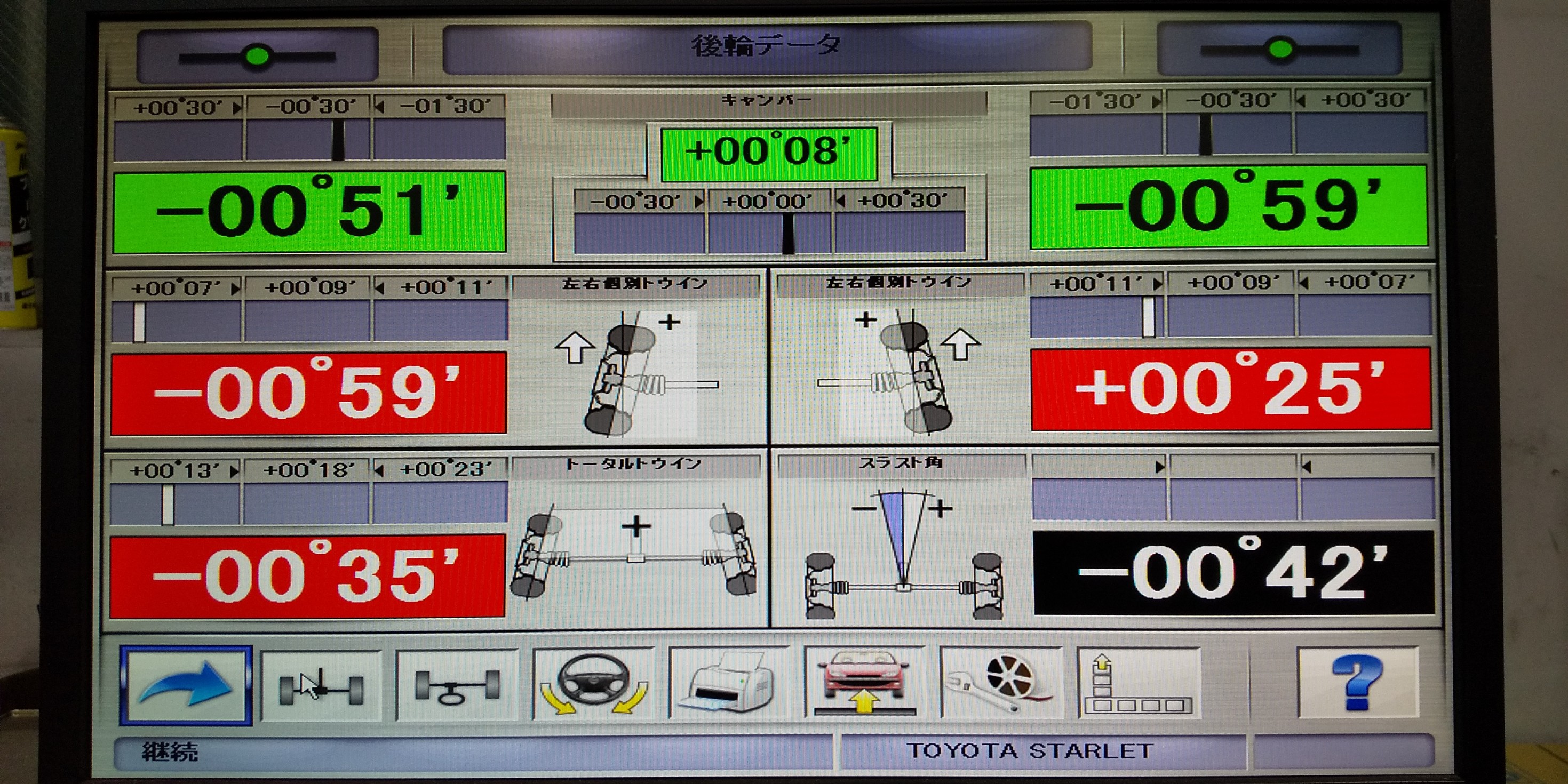 ツイストビームでどこも調整ができないリヤのトーがなんかもうえらいこっちゃですが・・・