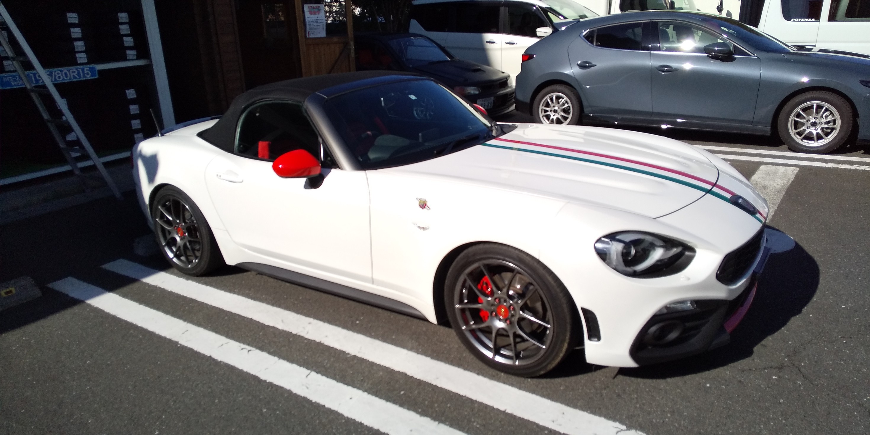 実はND系のロードスターをベースにアバルトがチューニングして出してるので、ターボついててやたら速かったりお顔が変わったりしてますが、足とか内装系は基本的にはロードスター用のパーツがついちゃいます♪