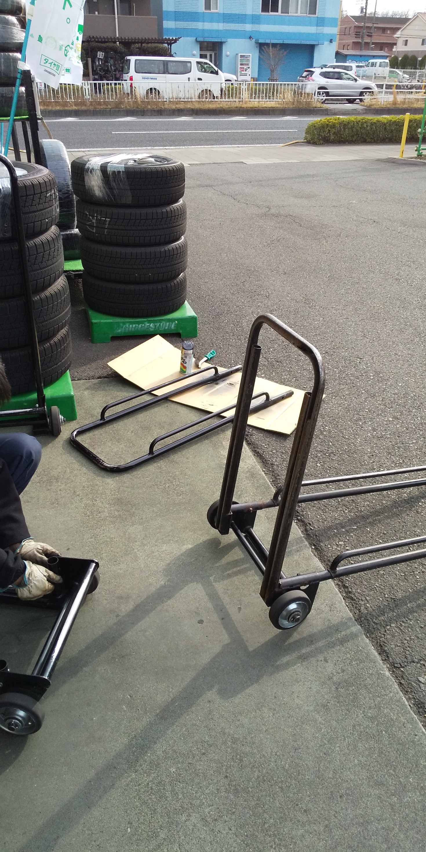タイヤを積んで運ぶ黒いガラガラがうちには何個もあるんですが、、、