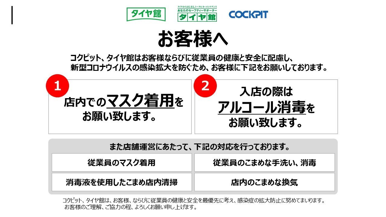 ◆接客時のマスク着用・・・お客様の健康と安全ならびに衛生を考慮し、