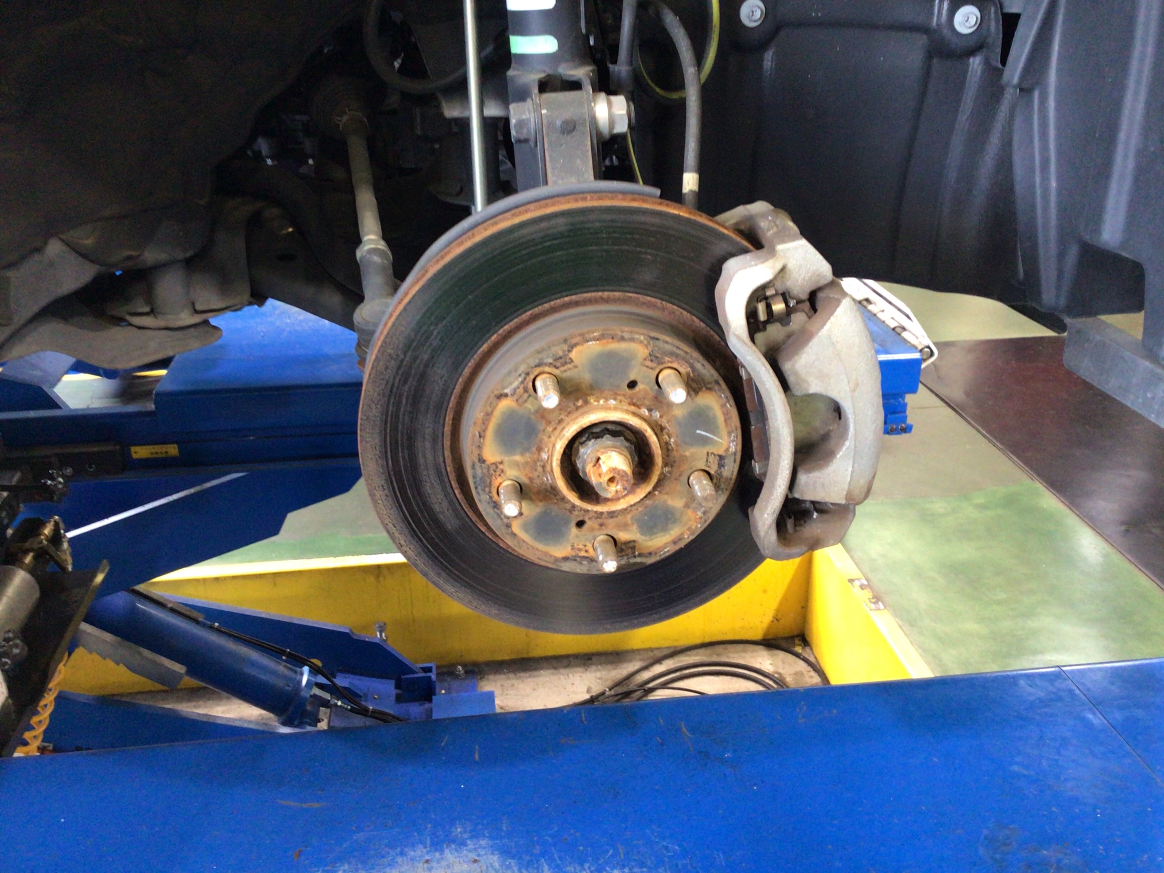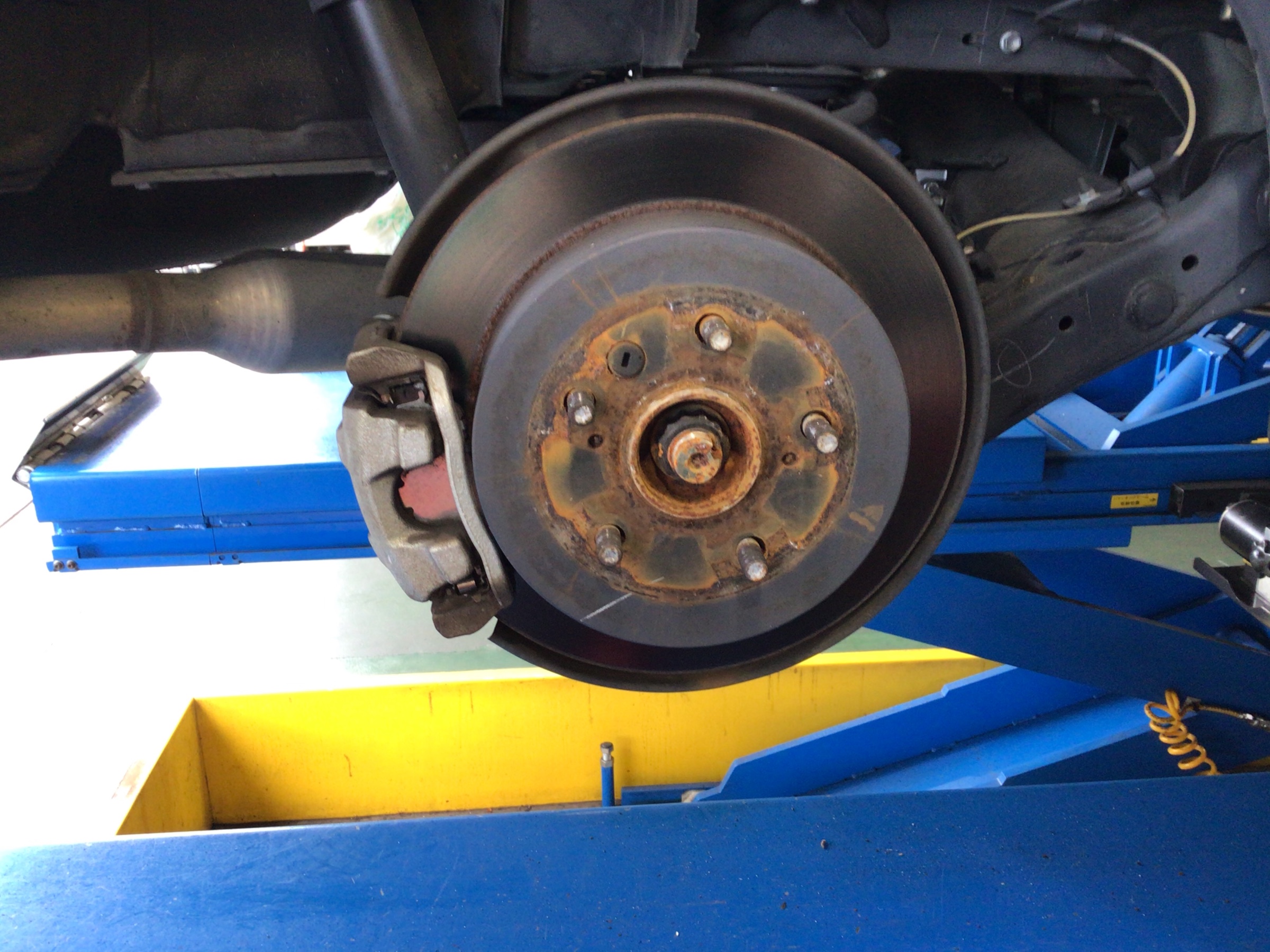 このままタイヤを取り付けて走行することも可能ですが、一旦サビを全部削ってあげて防錆剤
