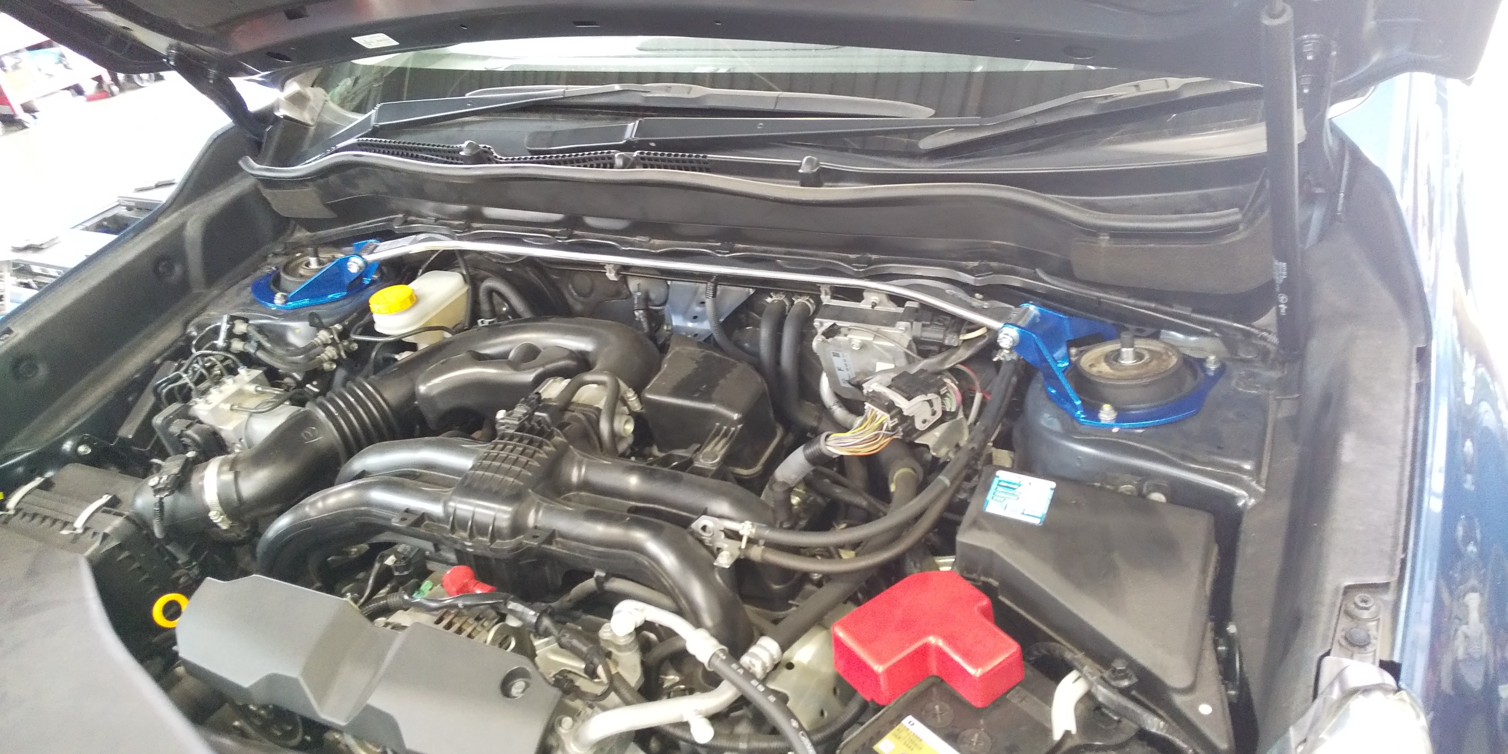 このお車は先日リフトアップ車高調をインストールしたので、足の動きをさらに良くするためにタワーバーも入れちゃいます。