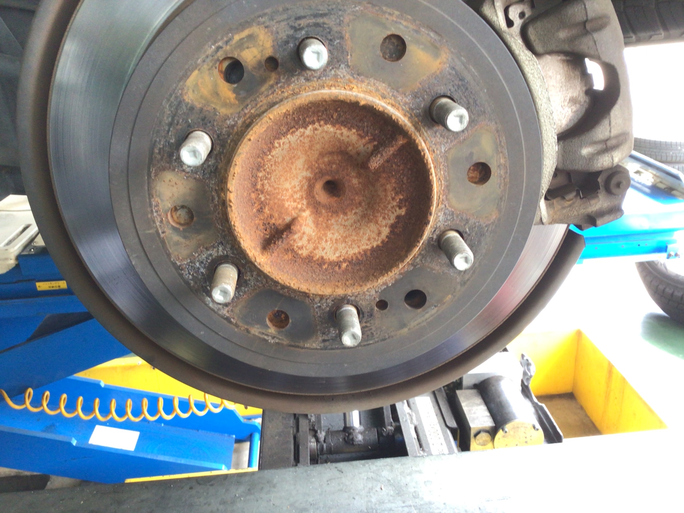 車とタイヤの設置面であるハブここが錆てしまうと最悪の場合脱輪につながる場合があります。