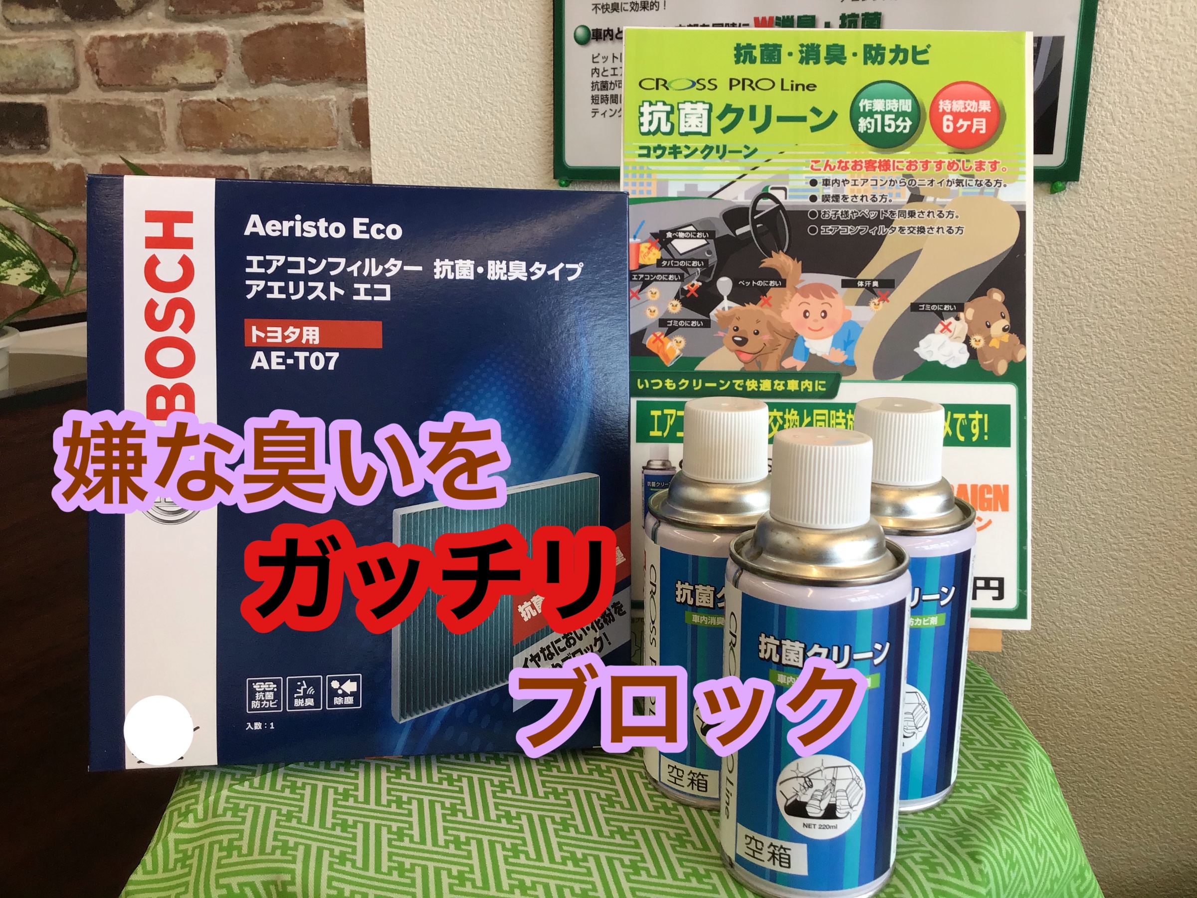 タイヤ館三条ではエアコンのお手入れに抗菌クリーンを使用しております!