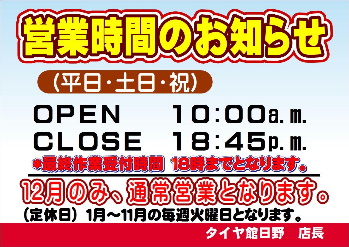 ☆★ 営業時間・定休日のお知らせ。★☆ ポスト 2024年4月27日 日頃より当店をご利用いただきましてありがとうございます。 2024年5月より、営業時間・定休日の変更のご案内をいたします。 1月~11月の毎週火曜日を定休日とさせて頂きます。 ただし、12月のみ通常営業(定休日なし)で営業させて頂きます。 営業時間は OPEN AM10:00(変更なし) CLOSE PM18:45(変更)となります。 詳しくはホームページでご確認ください。 お客様には、何卒ご理解くださいますようお願いいたします。 カテゴリ:お知らせ