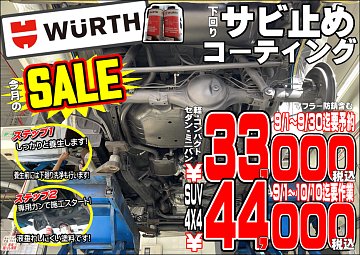 『下回りサビ止めコーティング』キャンペーン開催は9月30日まで‼