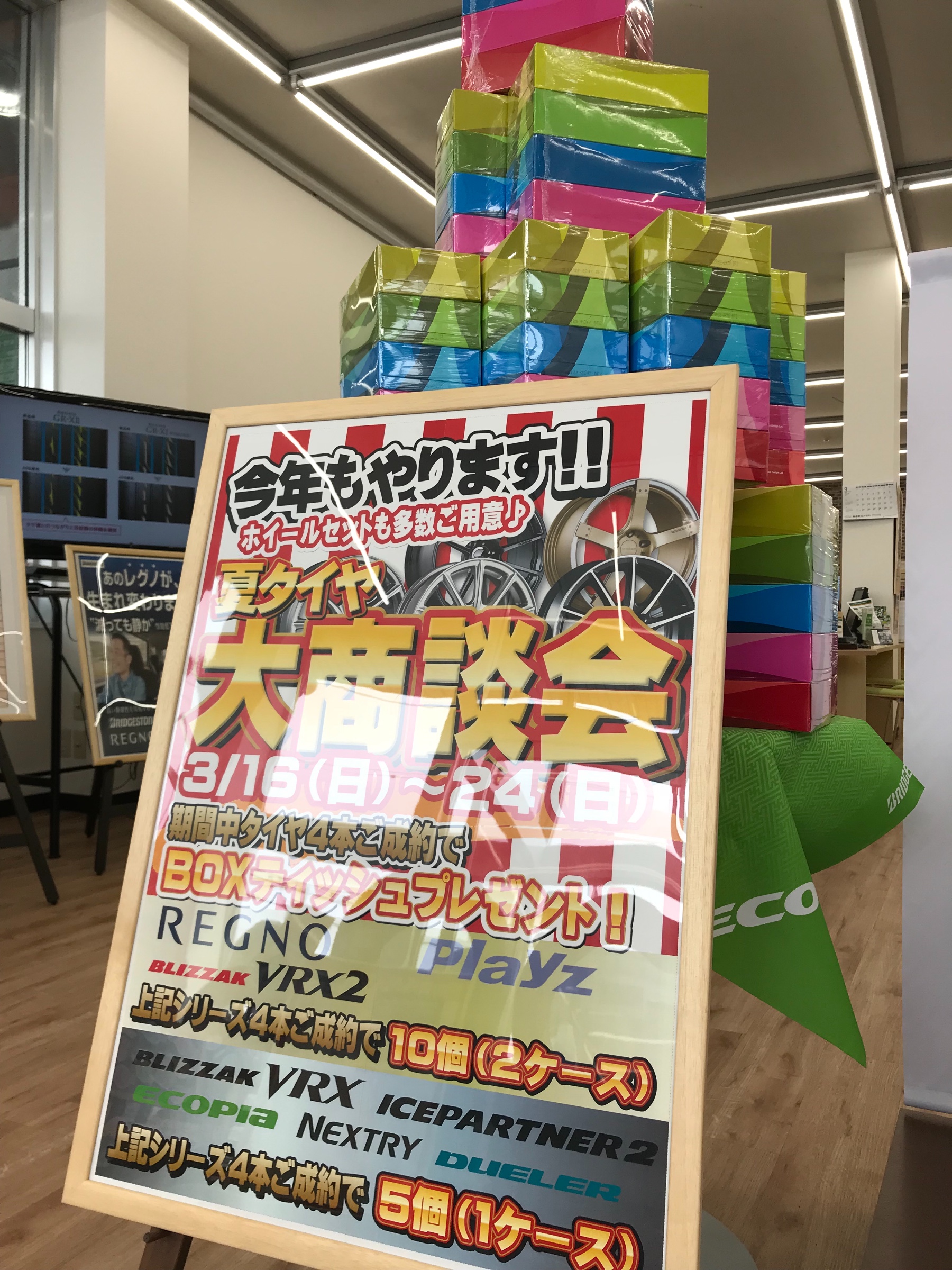 期間中、タイヤ4本ご成約でボックスティッシュもプレゼント中です!