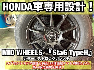こんにちは! 『タイヤ館 平岡』です。 HONDA車ユーザーの方へのご案内です! TVCMでお馴染みの 『MID WHEELS』様の 『StaG』のホンダ車専用ホイール 『StaG TypeH』のご紹介です! 好評発売中の 『ブリザック WZ-1』と組み合わさせていただきました! ホンダ純正の12R球面座ナットが使えますので ...