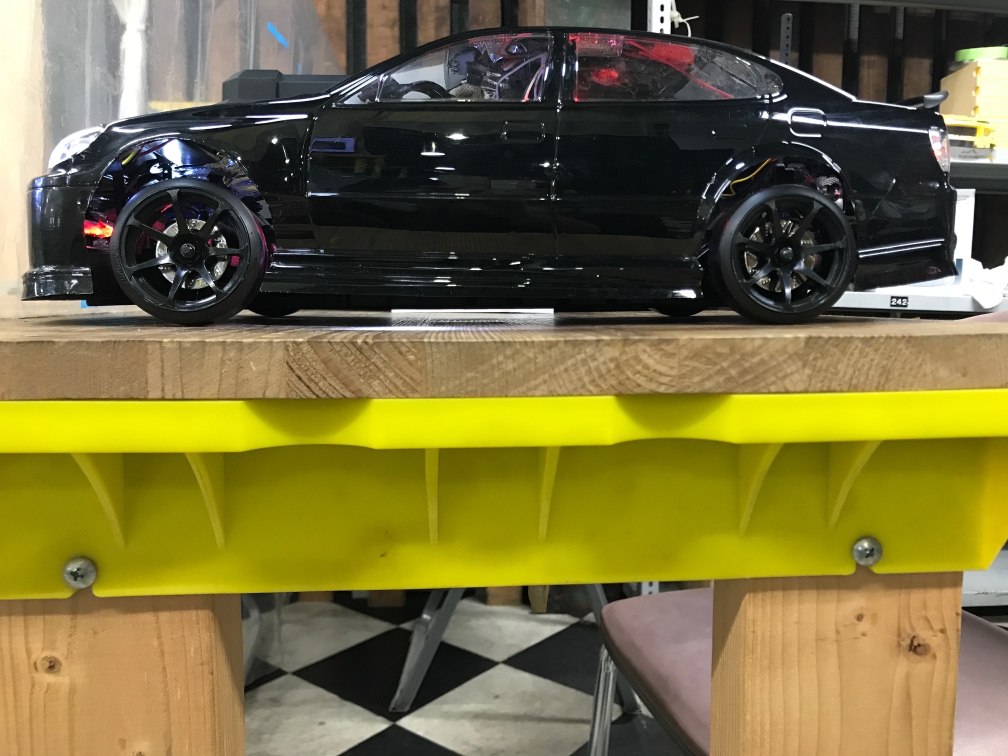 ちなみに最終的には車高7mm(1/10スケールなので、実車だと70mm?)に落ち着きました。