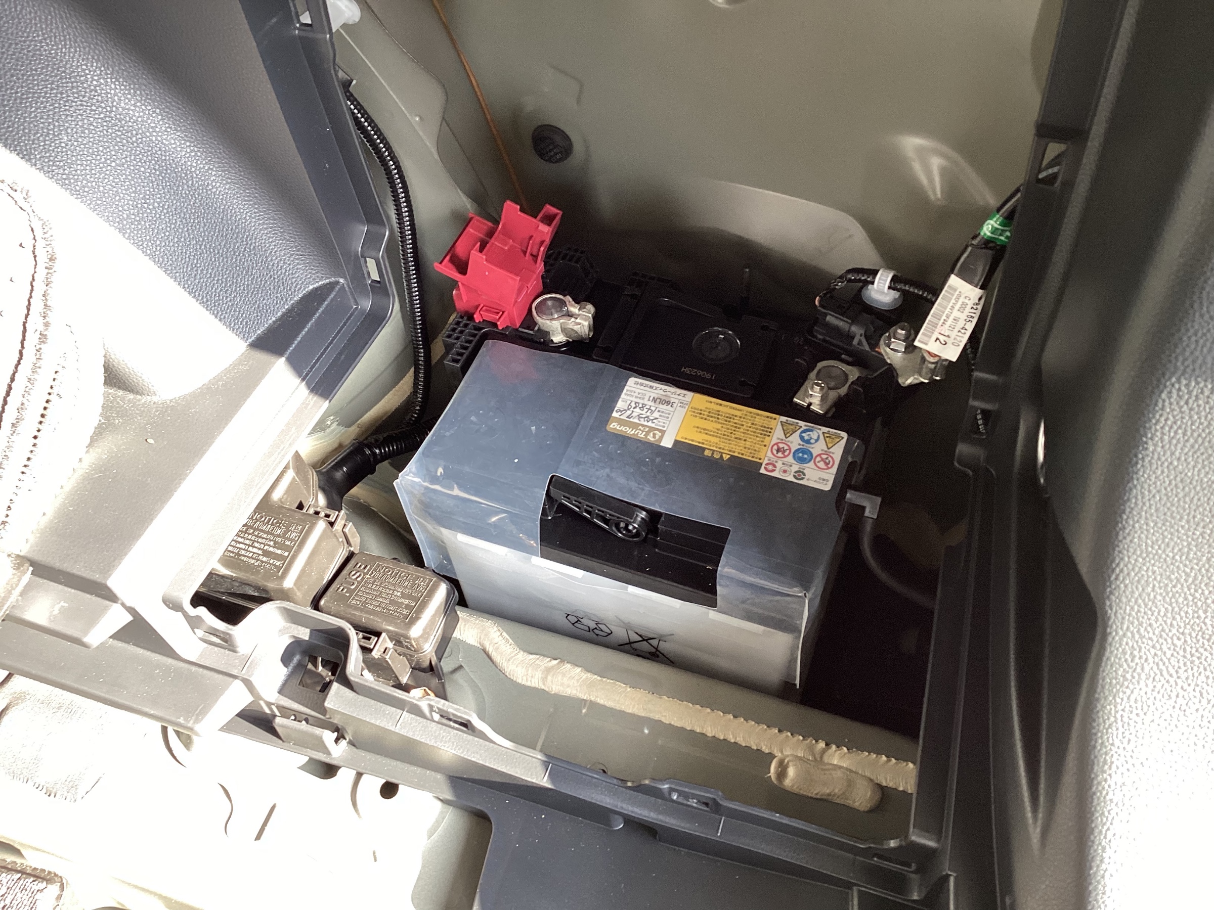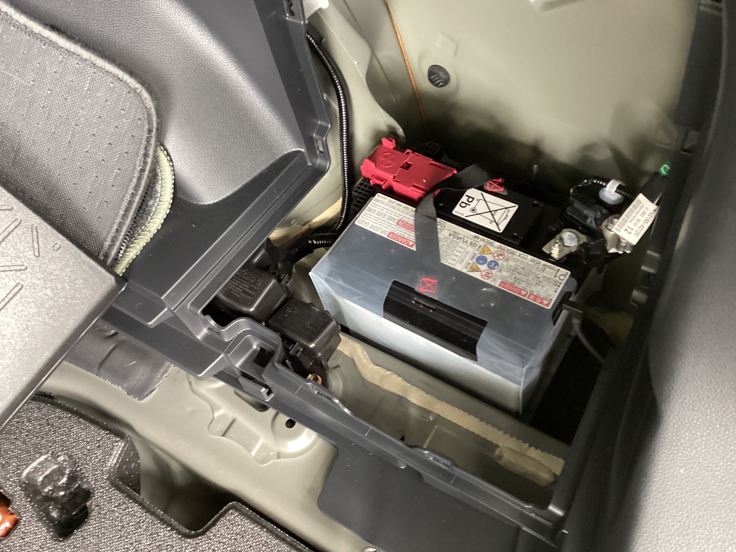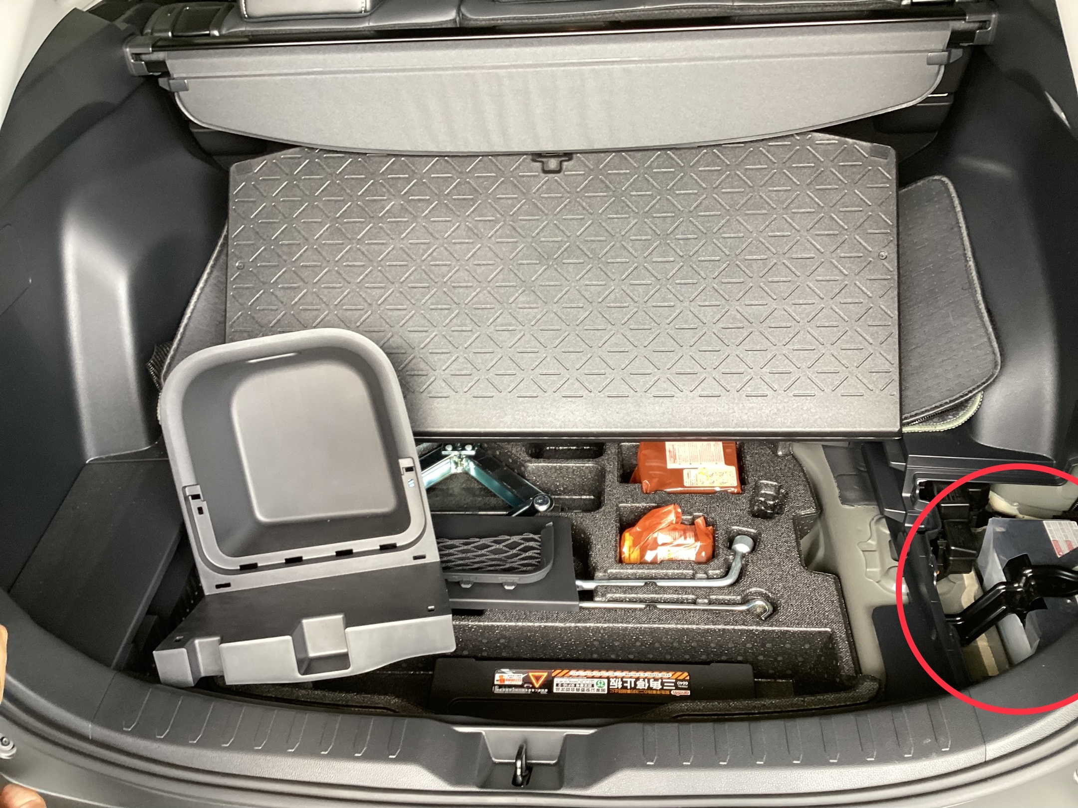 トランクの右下にバッテリーが出てきます!