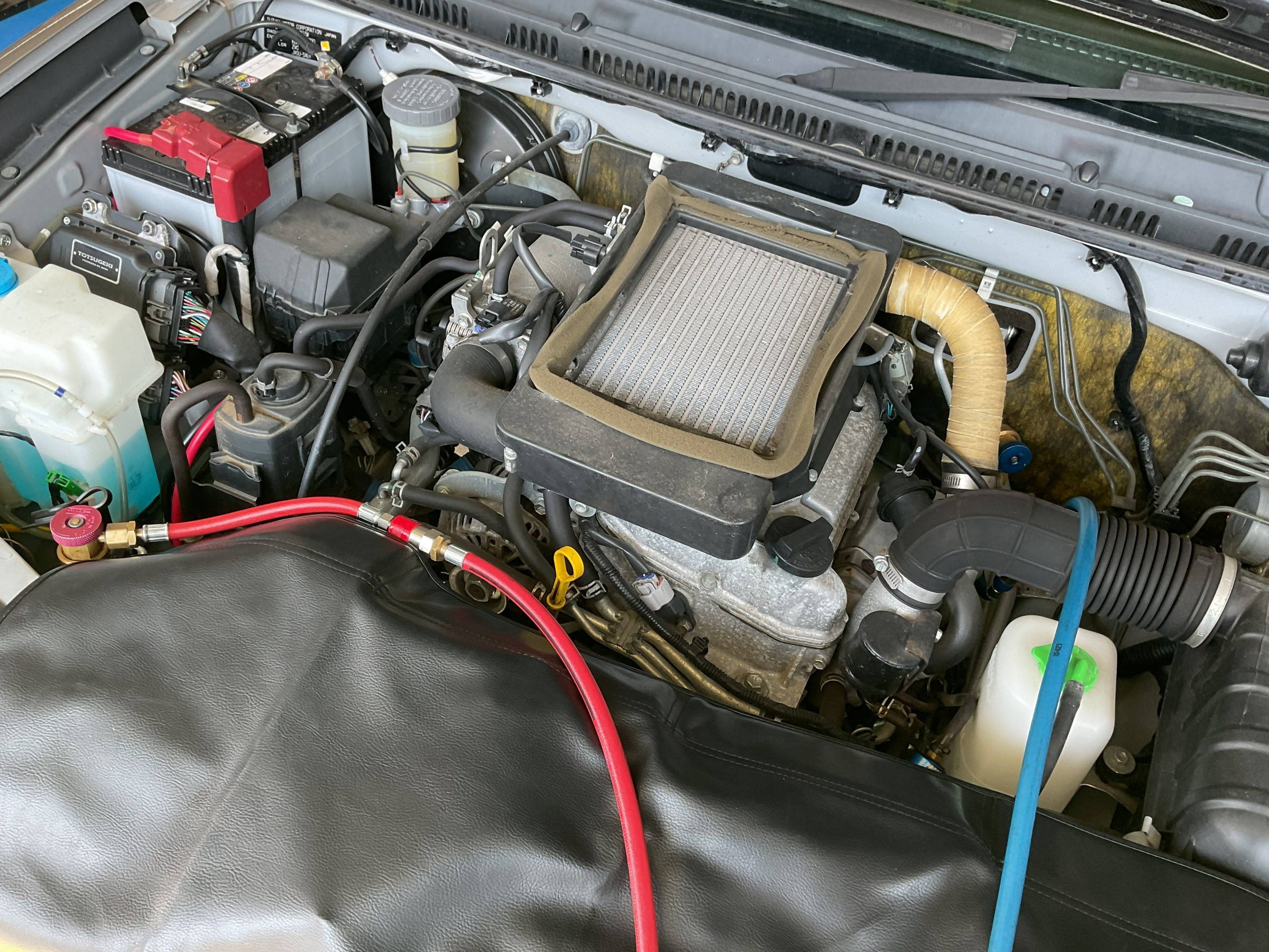 スズキ ジムニー エアコンガスクリーニング+添加剤 猛暑には勝てん(´;ω;`)ウッ…