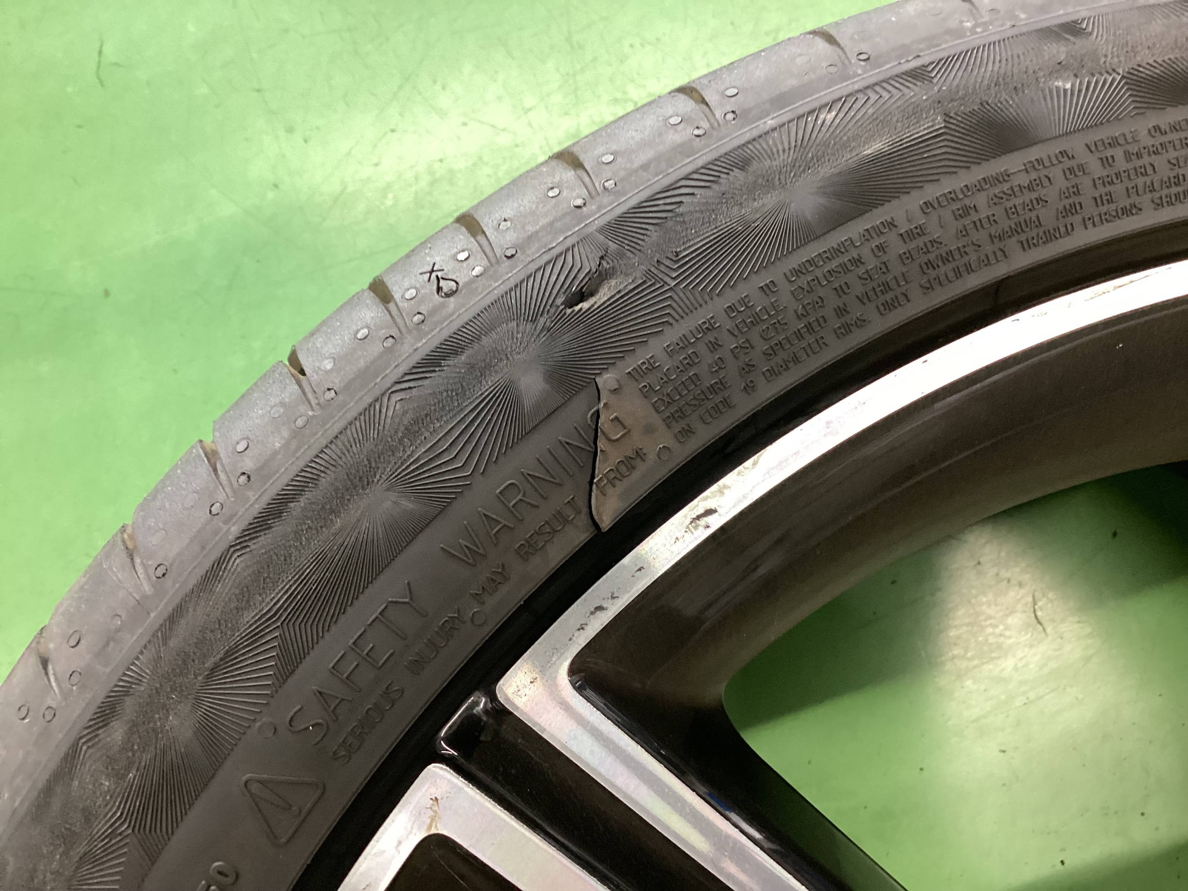 タイヤの側面損傷は交換になりますのご了承ください。