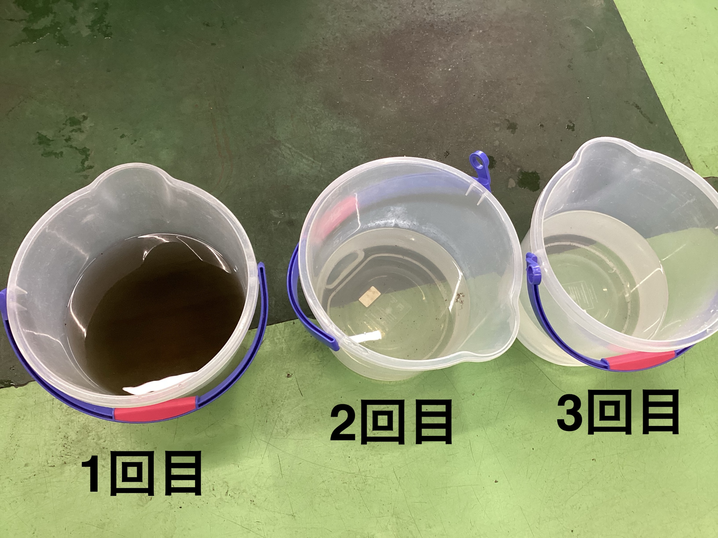 1回目から3回目の汚水を並べてみると綺麗になっているのがわかります。
