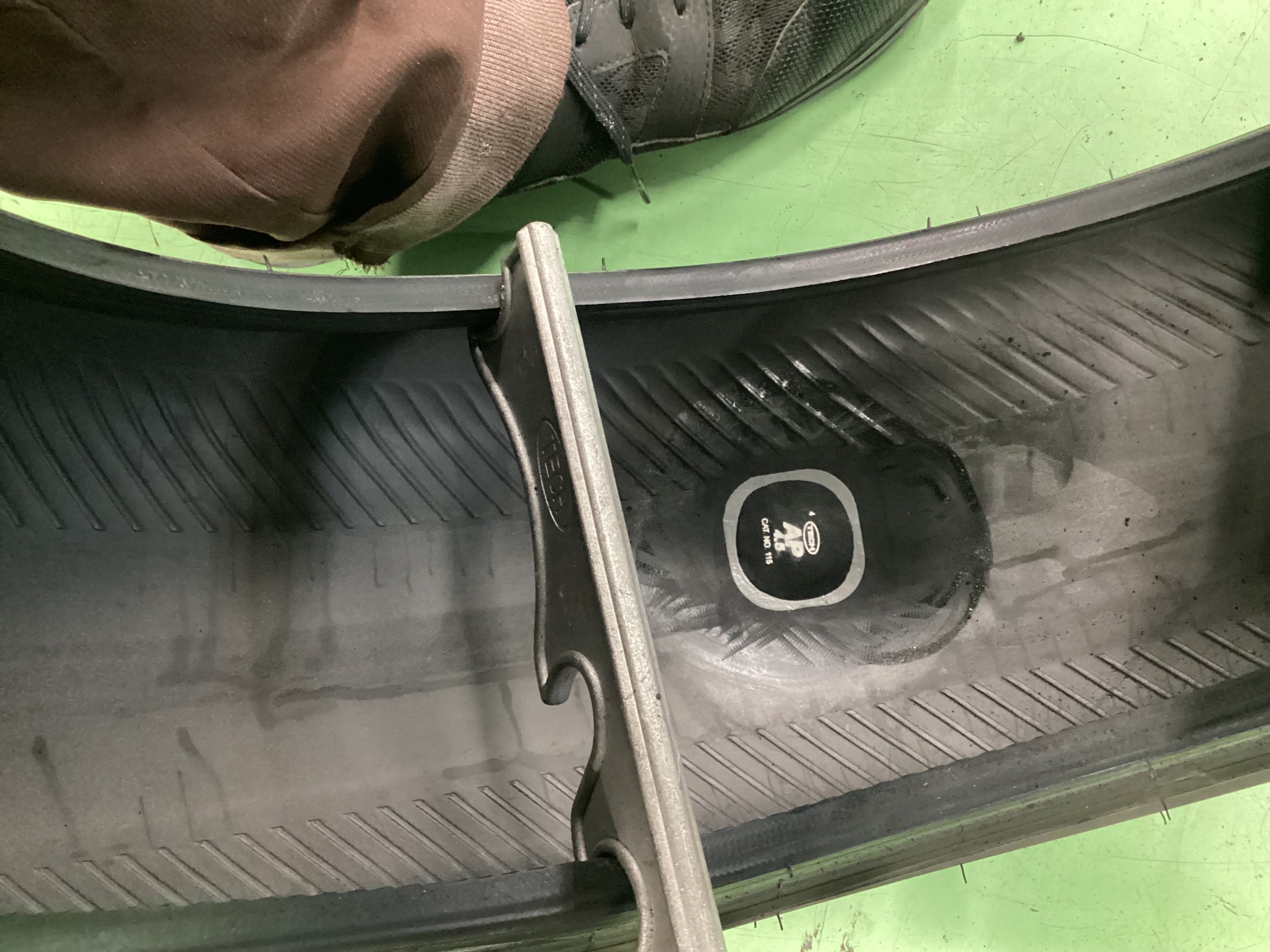 時々、空気が結構抜けてい状態で走行してしまうと、タイヤの横の部分が潰れてしまい、