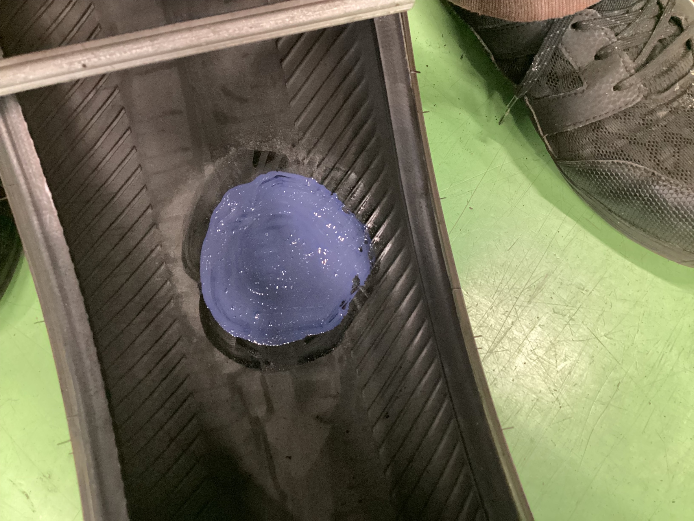 最後に、パッチより大きめに削った所を補修するように、コーティング剤を塗ります。