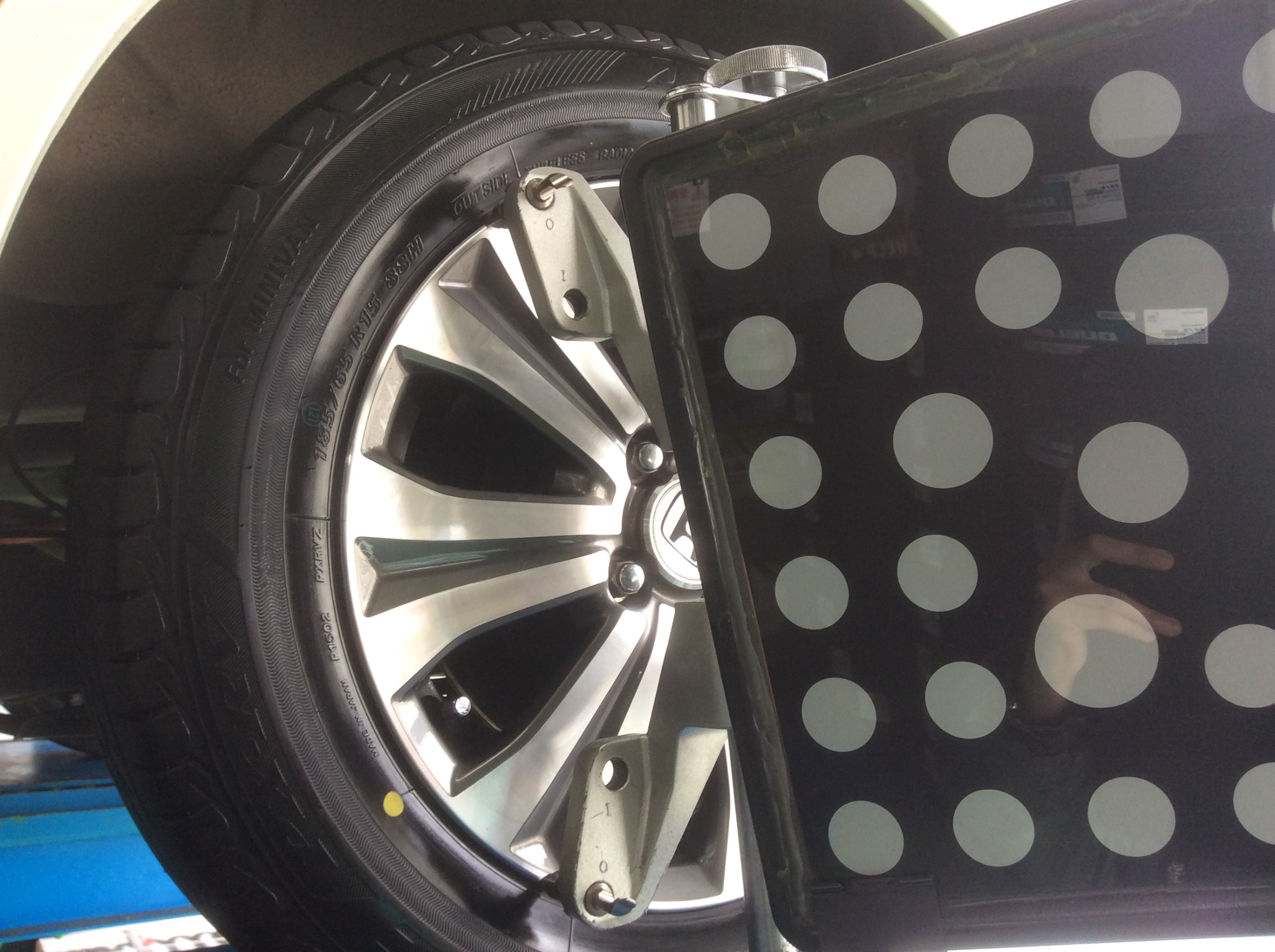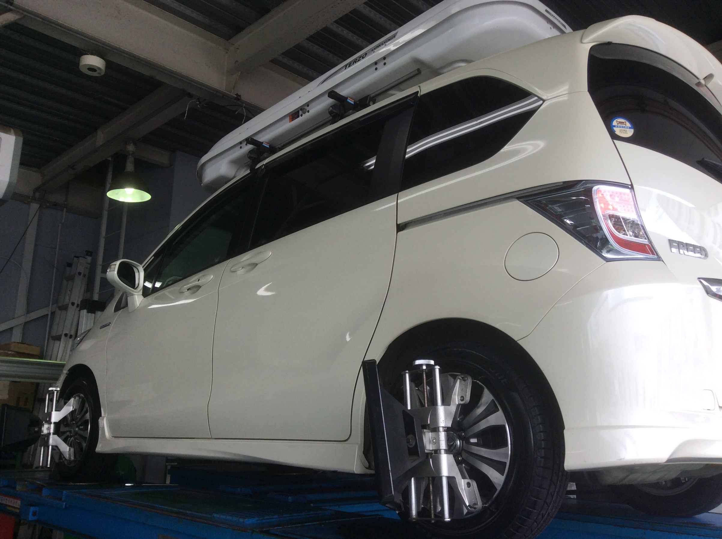 アライメント調整をする事でハンドル操作が楽になりますし、偏磨耗が軽減します(*^。^*)