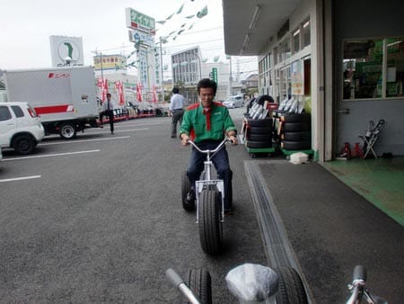 当店に常駐させて、いろいろなお客様に試乗していただきたかったのですが、残念ながら専用に作られた特別な自転車で、台数が無いためにまた別の体験イベント会場へと旅立っていってしまいました(/ロ゜)/