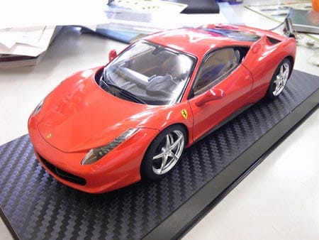 あと、現在店頭で最新のフェラーリ458イタリア(純正でポテンザS001装着車!)を展示中です・・・・・・・・・・・・・・・・・プラモデルですけど(笑