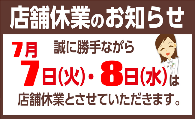 7日・8日店舗休業のお知らせ