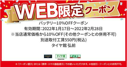 タイヤ館弘前では、バッテリーの取り扱いもしております。