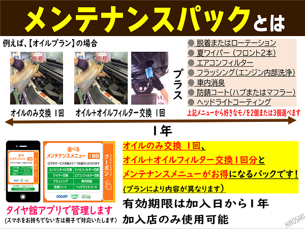 タイヤ館の【メンテナンスパック】おすすめです!!