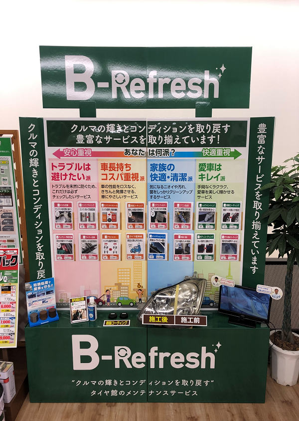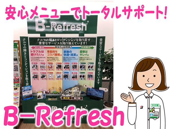メンテナンスメニューをクルマの使用用途や季節に合わせてご案内しているのが【B-Refresh】!