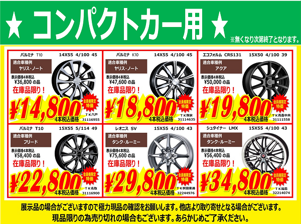 6月30日まで!【決算セール】コンパクトカーのタイヤ・ホイールがお得です!