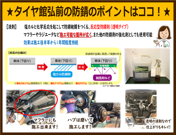 融雪剤や潮風に反応して被膜をつくりサビにくくするのが特徴で、熱に強いのでマフラーにも施工が出来るんです!!