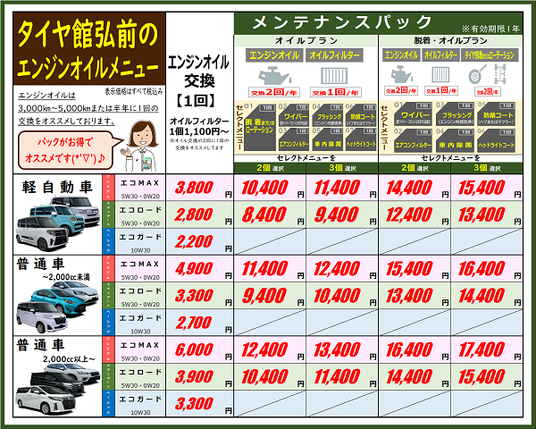 タイヤ館弘前では、エンジンオイル交換もやってます!