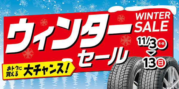 スタッドレスタイヤがお得!【ウィンターセール】開催!
