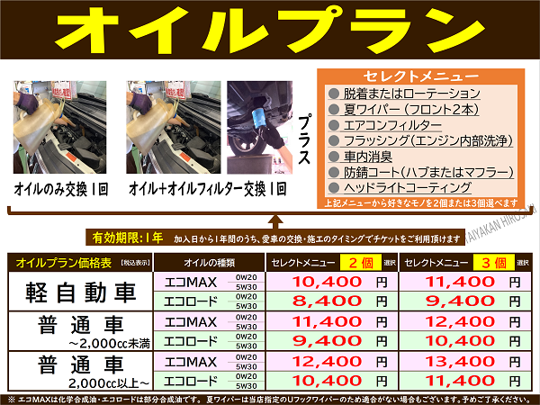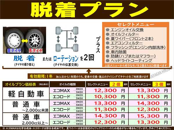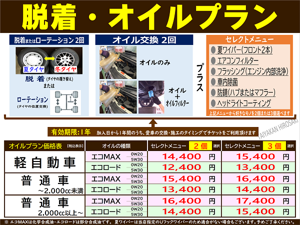 タイヤ交換やオイル交換はもちろん、やるとより快適になるメニューがセットになってるんです(^^)