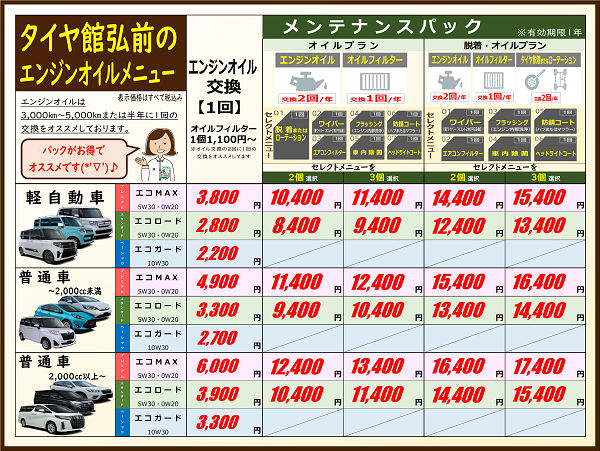 タイヤ館弘前で【エンジンオイル交換】をしよう♪