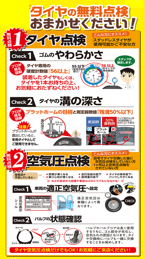 まずは、タイヤの無料点検で状態を確認しましょう(^^)♪