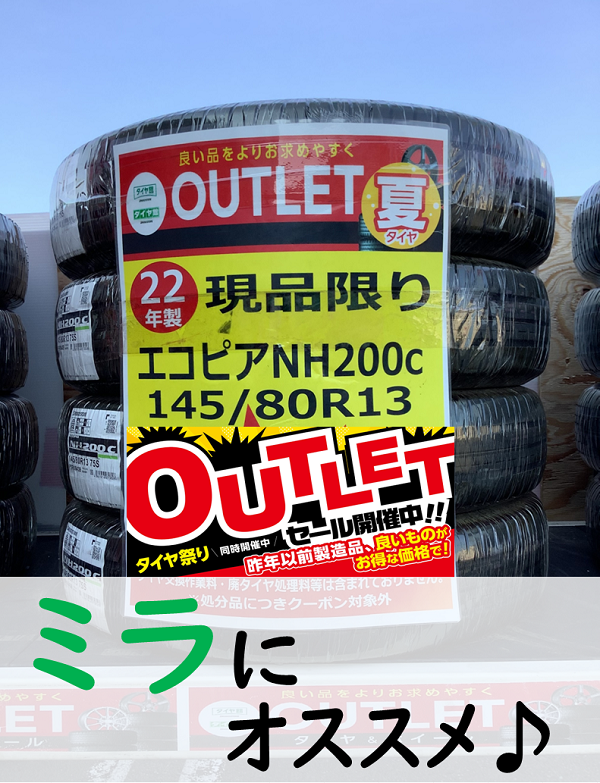 【アウトレットセール】夏タイヤ:ミラにオススメ!