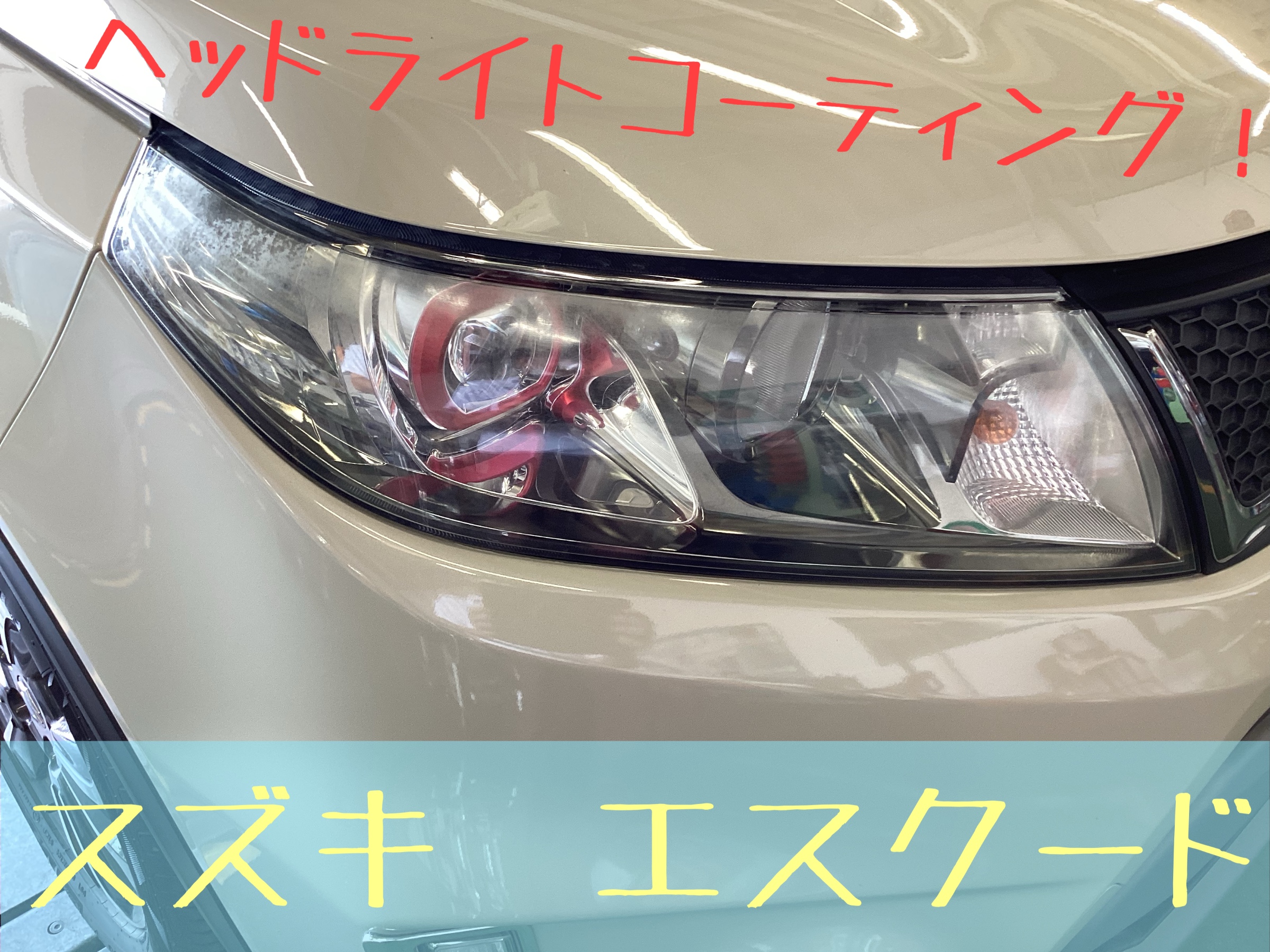 【スズキ エスクード】ヘッドライトコーティング!白ボケ磨きます