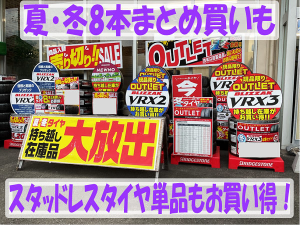 夏・冬タイヤ8本まとめ買いも、持ち越し在庫品のスタッドレスタイヤもお買い得!
